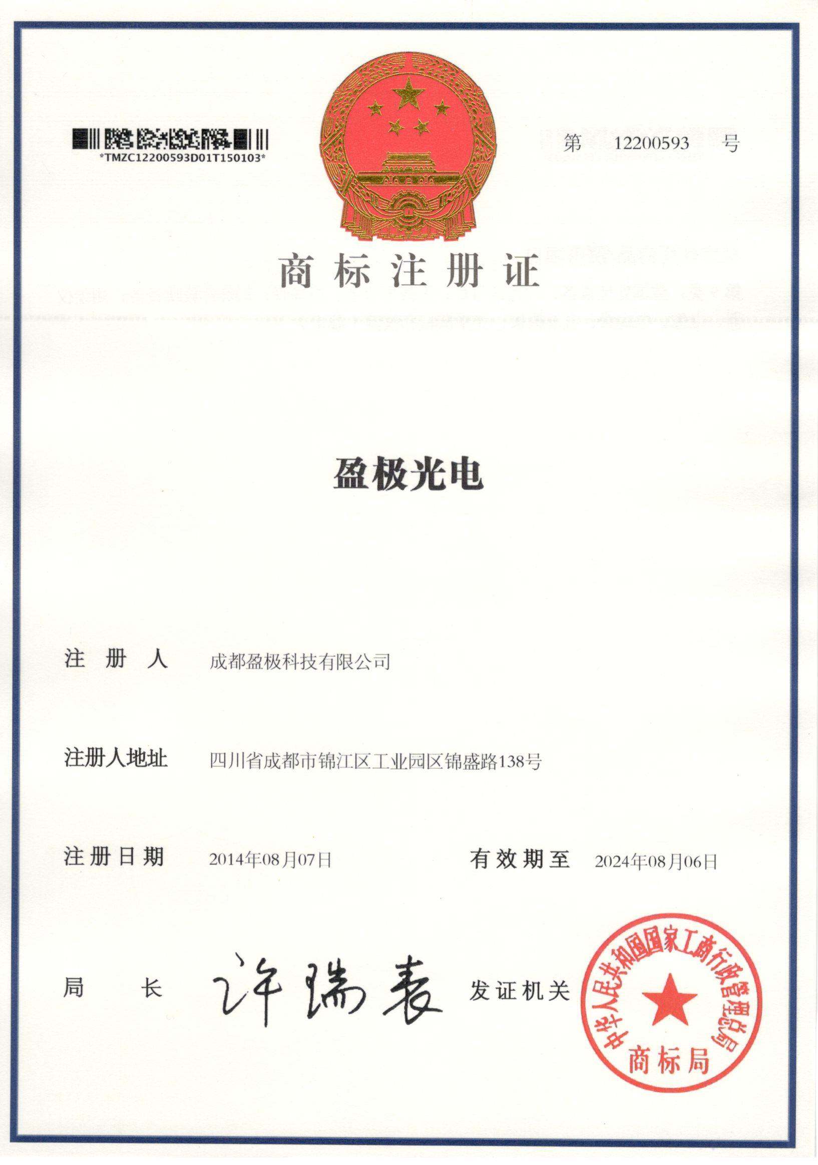 商標(biāo)注冊(cè)證書,盈極光電,成都盈極科技有限公司,OPGW光纜,OPPC光纜,野戰(zhàn)光纜廠家