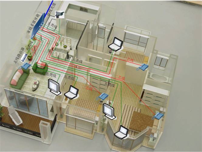 2)從將來可擴展角度考慮,建議所有房間需要接入設備、安裝信息插座處都布20PVC管(內(nèi)置兩條超五類線);從節(jié)省布線成本角度考慮,對同時有兩個通信產(chǎn)品需求的房間,建議從多媒體箱到近房間的第一個接出口之間用20PVC管線(內(nèi)含兩條網(wǎng)線)布線,從該房間接出口到房間另一個接出口之間用16PVC管線(內(nèi)含一條延伸網(wǎng)線)布線即可。如同一房間有三個或三個以上通信產(chǎn)品,則根據(jù)該原則增加管線布置。