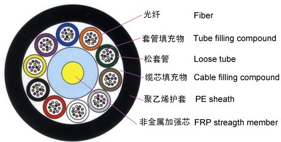 GYFTY光纜的結構是將外經是125μm內經是9μm、62.5μm、50μm的單?;蚨嗄B憷w套入用高模量材料制成的松套管中,松套管內注滿防水化合 物,纜芯的中心是一根表面覆有PE的金屬加強芯,松套管和填充繩緊湊的圍繞中心加強芯絞合成圓形的纜芯,雙面涂塑鋼帶PSP縱包,內在充以阻水填充物后擠 制聚乙PE護套制成。
