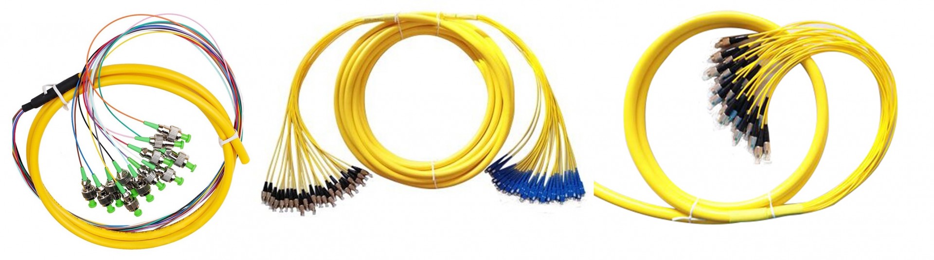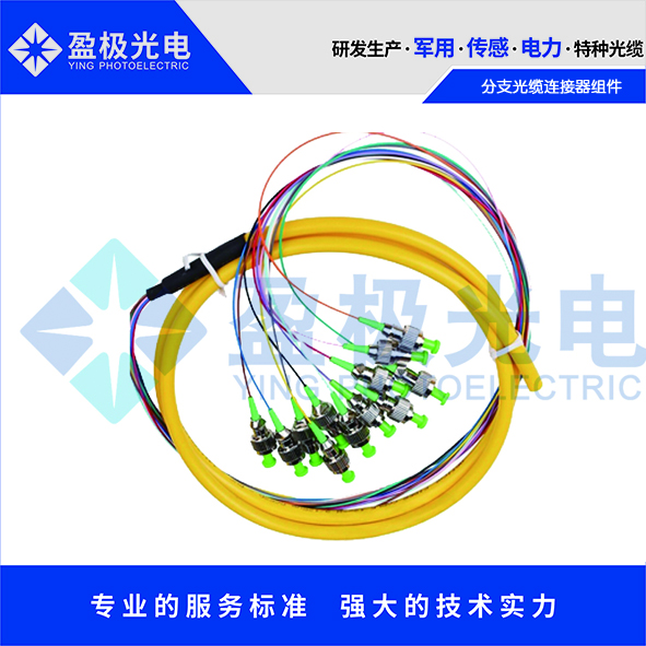 分支光纜連接器組件,以稱(chēng)分支光纜組件、分支光纜尾纖等,可以加工成為一端為連接頭,也可加工兩端連接頭,常出現(xiàn)在光纖終端盒內(nèi)容,用于連接光纜與終端設(shè)備。尾纖分為多模尾纖和單模尾纖。多模尾纖為橙色,波長(zhǎng)為850nm,傳輸距離為500m,用于短距離互聯(lián)。單模尾纖為黃色,波長(zhǎng)長(zhǎng)有兩種,1310nm和1550nm,傳輸距離分別為10km和40km。由4、6、8、12、24等不同根數(shù)組成。