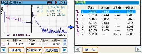 AV6416能夠快速準(zhǔn)確地查找出測(cè)試曲線中的事件點(diǎn)或故障點(diǎn)及其位置信息,并以事件表的形式列出線路中所有的事件信息,這對(duì)線路維護(hù)人員非常有用,既提高測(cè)試效率,又無(wú)需了解難以理解的背景知識(shí)。