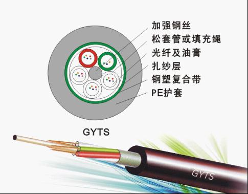 GYTY53光纜的結(jié)構(gòu)是將單?;蚨嗄9饫w套入由高模量的塑料做成的松套管中,套管內(nèi)填充阻水化合物。纜芯的中心是一根金屬加強(qiáng)芯,對于某些芯數(shù)的光纜來說,金屬加強(qiáng)芯外還需擠上一層聚乙烯,松套管(和填充繩)圍繞中心加強(qiáng)芯絞合成緊湊和圓形的纜芯,纜芯內(nèi)的縫隙充以阻水填充物。纜芯外擠上一層聚乙烯內(nèi)護(hù)層,雙面涂塑鋼帶(PSP)縱包后聚乙烯護(hù)套成纜。